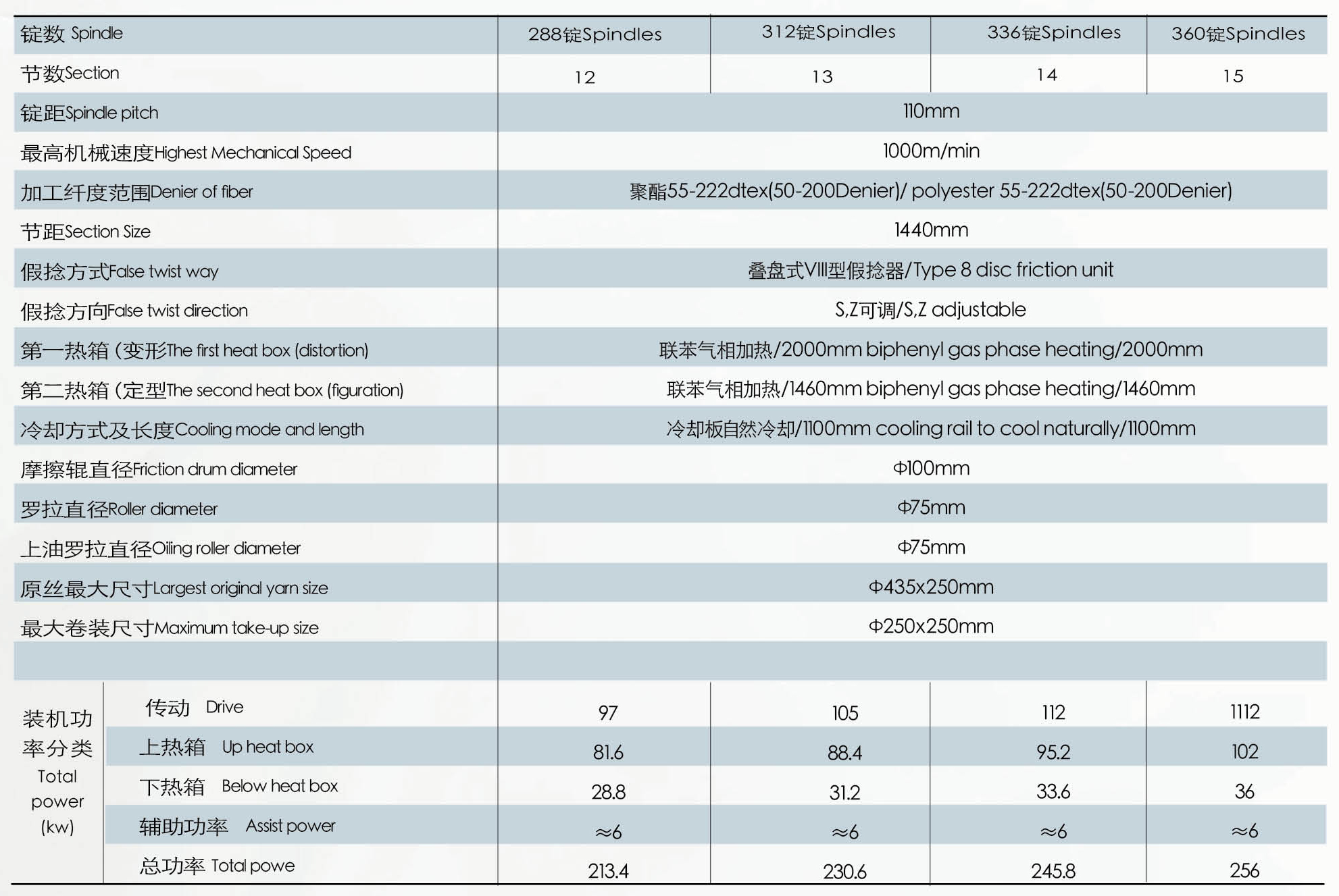 【設備用途Equipment use】 該機主要是將POY原絲(聚酯預取向絲),通過拉伸和假捻變形加工成具有低彈性能的假捻變形絲(DTY滌綸彈力絲),加工時在每個錠位將S捻和Z捻的雙絲合股直接一步加工...